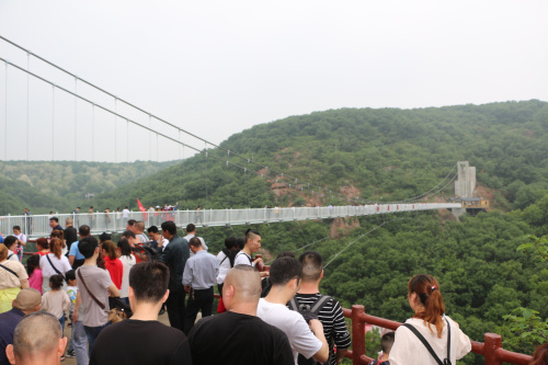 燈臺架山勢雄偉,抬頭便望見盤旋而上的懸崖棧道,號稱中國最驚險刺激的原生態(tài)懸崖棧道,下著雨的棧道濕滑無比,走在上面更顯得驚心動魄了,為了方便行走,防止滑倒,大家三兩人手拉著手小心翼翼的前進(jìn),盡管下著雨的山林溫度更低了,但是大家的心是熱的。從天而降的天池瀑布,直聳天際的陡峭天梯,自然形成的天井……等等,無不在展示大自然的鬼斧神工,才能讓世人感受到其中的絢麗多彩。最有趣的屬凌駕于空中的玻璃棧道,踩在玻璃上面就像懸空置身于半空中,令人膽戰(zhàn)心驚,但站的高望的遠(yuǎn),站在玻璃棧道上看到的美景是站在平地上所看不到的。