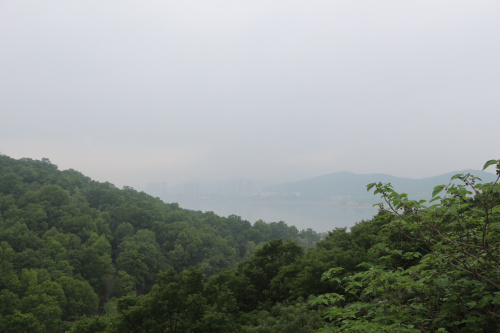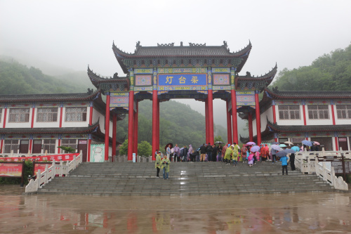 夜里下了一場雨使得清晨的空氣更加清新,21日清晨六點多鐘一行人乘坐大巴車安全抵達(dá)目的地——二郎山景區(qū)。二郎山景區(qū)位于舞鋼市石漫灘水庫南岸,是石漫灘國家森林公園的主景區(qū)之一,是國家AAAA級景區(qū)。相傳,二郎擔(dān)山趕太陽行走至此,造就了尖山、平山、長嶺山等七座山峰,形成了今天的二郎山。