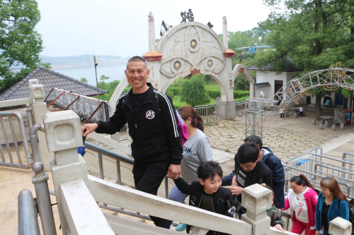 一行人在二郎山景區(qū)大門口下車,遠(yuǎn)遠(yuǎn)望去,能看見二郎神的雕像巍峨的屹立在山中央。為了尋找這山中的樂趣,即使下著淅淅瀝瀝的小雨,也絲毫阻擋不了大家的一番熱情。