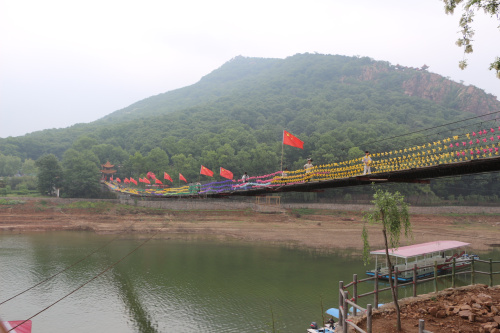 穿過槐花森林便看見一座橋駕于湖面之上,這座橋是由多個木板拼接而成的,漫步于驚險刺激的水上吊橋上,顫顫悠悠給人以飄飄欲仙之快感,正如其名“仙人渡吊橋”。大家小心翼翼的在橋上走著,望著平靜的水面和周圍寧靜的山林,心情也變得無比愜意,漸漸地也沒有剛走上橋時的緊張感了。如此寬闊的水面,自然也缺少不了水上娛樂活動,原始的竹筏體驗、驚險刺激的水上漂流、團(tuán)隊合作的劃龍舟比賽等等,大家玩的不亦樂乎,盡情感受這森林氧吧帶來的清新,是城市里所沒有的心曠神怡。