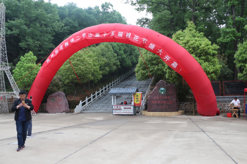 “好香呀!”不知是誰發(fā)出來一句感嘆,大家聞言紛紛細(xì)嗅那空氣中的芬芳,淡淡的槐花香氣縈繞在鼻尖,使人神清氣爽。抬頭一看,一個大圓形拱門立在眼前上面寫著“熱烈祝賀舞鋼市二郎山第十五屆槐花節(jié)盛大開幕!”讓人想去那槐花森林中一探究竟。踩踏在落滿槐花的石臺階上,仿佛置身于槐花的世界里,到處都是她的身影,她展玉姿于天地,溢芳香于山野。一株株槐花樹,鮮綠的槐葉映襯著乳白玲瓏的槐花,掛滿樹冠,簇簇相依,恰似一串串玉珠倒垂著,讓人癡,誘人醉,引人迷,使人愛。頗有“香中稱淡妙,花里最清寒”之風(fēng)范。
