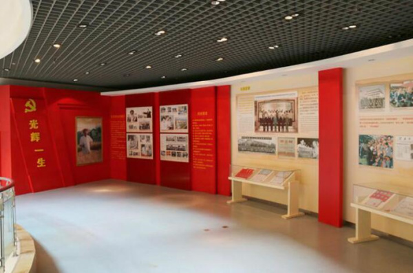 鄘南大地,生機(jī)盎然。新鄉(xiāng)縣七里營鎮(zhèn)劉莊村綠草如茵,鳥語花香。一座新穎的三層建筑,緊靠著高高的六層觀光平臺(tái)。乳白色和淡黃色的外墻瓷磚,與藍(lán)寶石般玻璃相間。朱紅色銅釘門,極富民族風(fēng)格。大門正上方,高懸著13個(gè)大字:劉莊展覽館史來賀同志紀(jì)念館。紀(jì)念館占地19畝,建筑面積4000多平方米,12個(gè)展廳,布展照片300多幅,各類展品100余件。