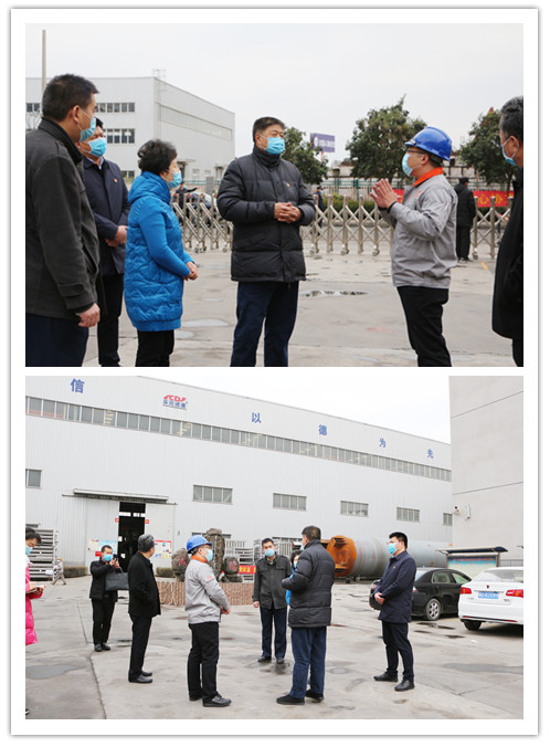 2020年3月4日下午,新鄉(xiāng)市委常委、紀(jì)委書記馬鎖文、鳳泉區(qū)委副書記、區(qū)長高瑋一行人在常務(wù)副總經(jīng)理孔令君的陪同下,蒞臨誠德公司視察新冠疫情防控工作。
