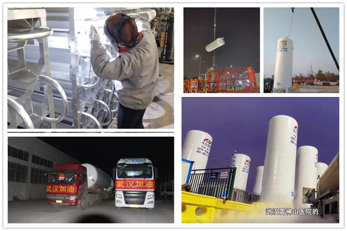 新冠疫情爆發(fā)期間,新鄉(xiāng)誠(chéng)德火速組織員工返回工作崗位,星夜兼程,排除萬(wàn)難,為武漢雷神山醫(yī)院項(xiàng)目制作應(yīng)援設(shè)備——“醫(yī)用低溫液氧儲(chǔ)罐”以及調(diào)壓裝置、空浴式汽化器等配套設(shè)備。從1月29日接到緊急召令,到2月2日上午8點(diǎn),設(shè)備順利抵達(dá)武漢雷神山醫(yī)院指定地點(diǎn),在技術(shù)人員指導(dǎo)下進(jìn)行安裝調(diào)試。2月4日,六套醫(yī)用氧供氣系統(tǒng)設(shè)備調(diào)試完畢。為雷神山醫(yī)院建設(shè)出力,為這場(chǎng)不平凡的“戰(zhàn)疫”奉獻(xiàn)一份力量,是新鄉(xiāng)誠(chéng)德的榮幸。