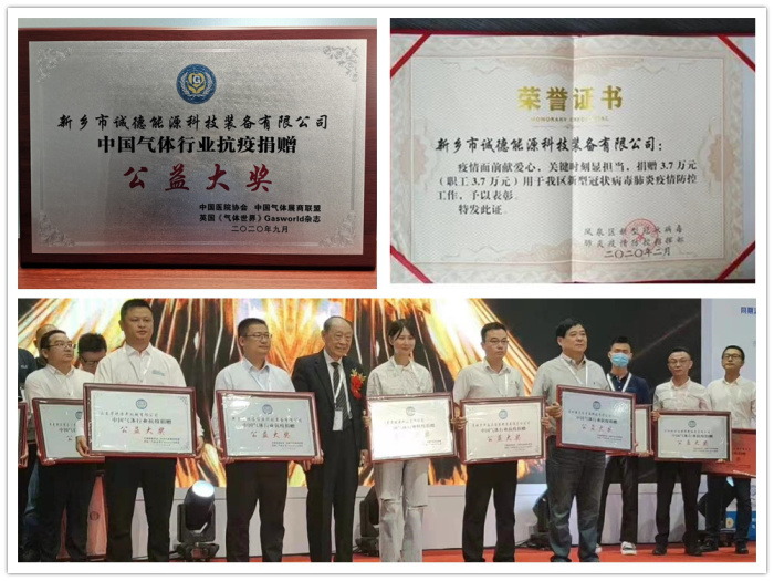 6月,鳳泉區(qū)新型冠狀病毒疫情防控指揮部授予新鄉(xiāng)誠(chéng)德榮譽(yù)證書;9月,中國(guó)氣體行業(yè)表彰大會(huì)上,新鄉(xiāng)誠(chéng)德榮獲“公益大獎(jiǎng)”。