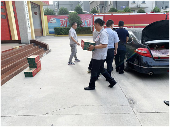 2020年8月1日上午,正值一年中較熱的三伏天。誠德公司黨支部組織黨員、入黨積極分子和部分員工走進(jìn)鳳泉區(qū)消防大隊(duì),慰問辛勞、可愛的消防官兵。為他們送上防暑清涼品礦泉水、豬肉等慰問物品,并代表公司全體員工致以真摯的問候。